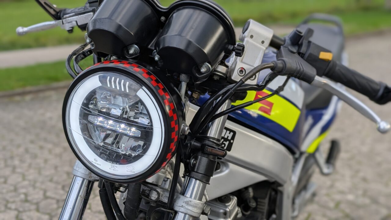 Der Wunsch nach einem zweisitzigem Motorrad, inkl. dezentem Umbau wurde erhört. Ich habe die GS vorneherum so gestaltet wie ich es auch bei der „Cafeshot“ oder „Acker Edition“ mache. Hinten beließ ich die serienmäßige Verkleidung inkl. Sitzbank, entfernte allerdings das Rücklicht und vieles mehr.