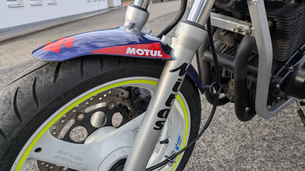 Das Motorrad bekam ein cooles Foliendekor auf Felgen, Kotflügel, Tank und Seitenverkleidungen im Ecstar-Design.