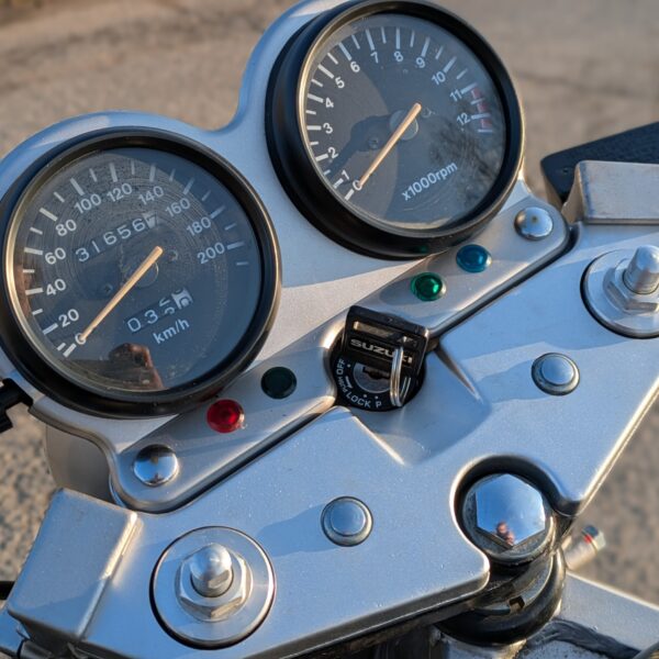 Allgemeine Infos zum Motorrad: Die 500er GS von Suzuki ist ein sehr bewährtes und langlebiges Motorrad mit überschaubarer Technik. Der luftgekühlte Zweizylinder-Viertakt-Reihenmotor hat einen coolen Look und einen entsprechenden Zweizylinder-Sound. Mit ihrer relativ geringen Sitzhöhe, dem geringen Gewicht und ihren sechs Gängen, ist sie super handlich und ideal geeignet für kleinere Fahrerinnen und Fahrer bis ca. 180 cm. Die Suzuki GS 500 E/F wurde von 1989 – 2013 nahezu unverändert gebaut! Verkauft wurde sie in D bis 2006, danach konnte sie die geforderten strengen Abgaswerte der EU nicht mehr erfüllen.