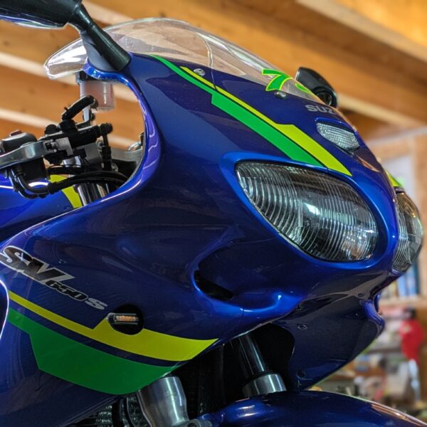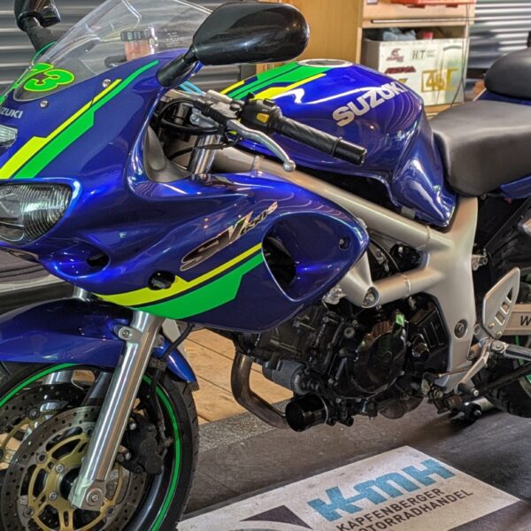 Die SV besitzt, wie der Name schon andeuten lässt, einen Zweizylinder 90 Grad V-Motor a la Ducati, wassergekühlt und mit 4 Ventilen Pro Zylinder. Alurahmen und Aluschwinge, zweigeteilte Sitzbank, Rahmenfeste Frontverkleidung, ordentliche Bremsen gepaart mit der Alltagstauglichkeit und der Durchzugsstärke des Motors, in Verbindung mit dem günstigen Preis, machen und machten die SV zu einem Topseller in ihrer Klasse.