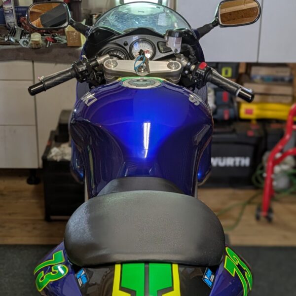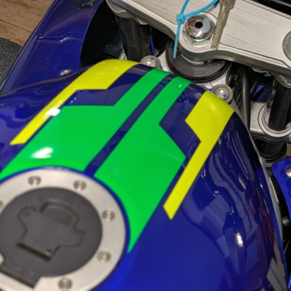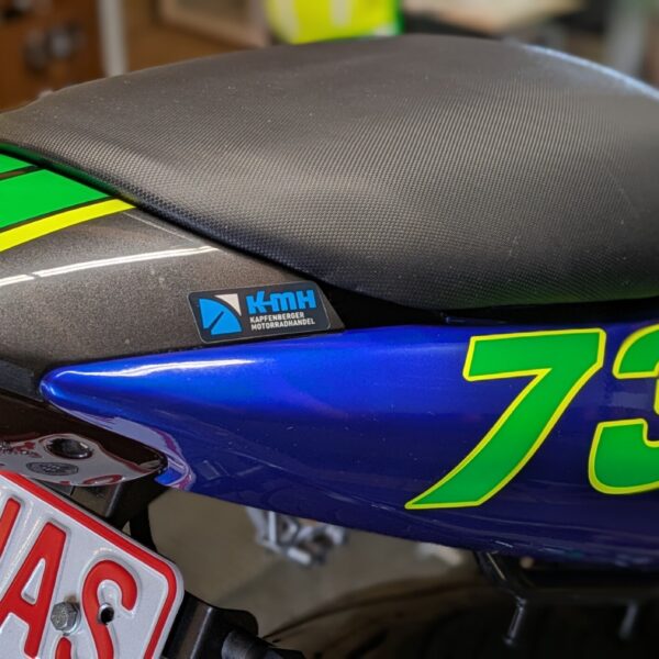 Die Umbaumaßnahmen im Einzelnen: neu beschichteter Tank, Led-Miniblinker vorn und hinten (hinten mit integriertem Brems- und Rücklicht), kleiner Nummernschildhalter mit Led-Beleuchtung, Folierung im Racing-Look (Farbgebung nach Kundenwusch), TÜV neu und allgemeine 40-Punkte-Durchsicht.